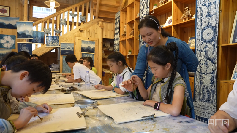 陆勇妹正在教孩子们学习蜡染本事(央广网发 吴光线 摄)