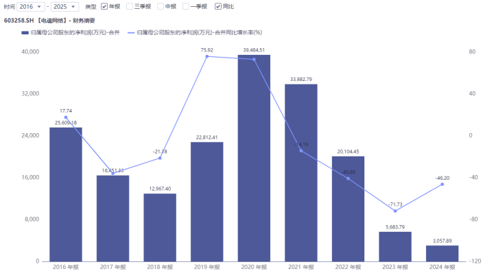 但在2021年,其功绩开动较着滑坡。至2024年归母净利润已从3.38亿元降至3057.89万元,复合增速-55.15%。2025年这一主义展望亏本1.6亿元—2.3亿元。