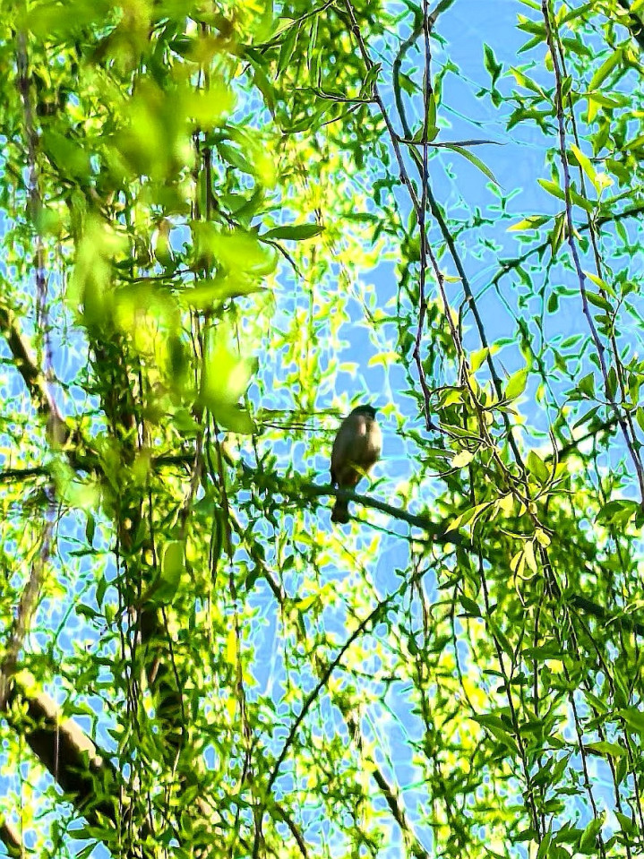 但柳林间并不缺飞鸟,白头鹎、鹊鸲走动穿梭,要是要说数目最多的,仍是小麻雀。它们飘飘欲仙,貌似赶尽杀绝的,整日在柳林中聒噪束缚。