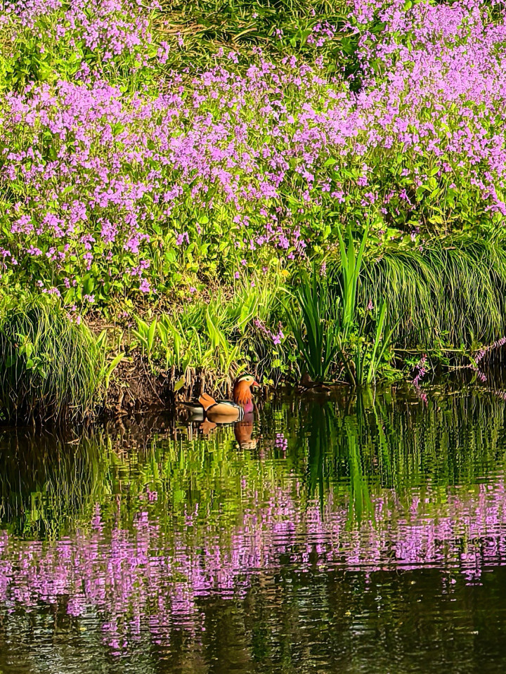 鸳鸯贴着湖水慢游,岸边二月兰开得正盛。性急的几株碧桃早已按纳不住,竞相怒放。每一株树下都围着几个应允的游东说念主。
