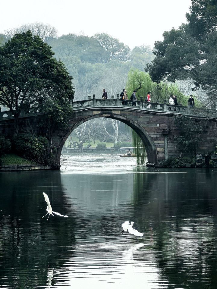 我曾持着于古典、无缺、诗意的好意思好,以为柳浪闻莺,必得黄鹂婉转,一如宋画清幽。然而从盼莺到听雀,我的情绪,如同里西湖的春水,在浴鹄湾迟缓转了个弯。