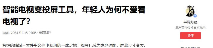 电视的故事远未收尾,仅仅脚本需要重写,从万众注意标“客厅霸主”到亟待再行定位的“家庭伙伴”,这场转型阵痛诚然剧烈,但也生长着改动的可能。
