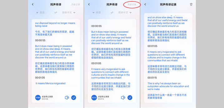 同声传译功能则像一位随身翻译官,援救英语、法语、日语、意大利语等十余种话语。在网罗会议或在线学习时,它可以边听边涌现翻译笔墨,及时提供双语字幕,连系潦倒文暴露,幸免产生歧义。况且后续还可以通过历史记载,稽察之前所记载的内容,终点宽解。