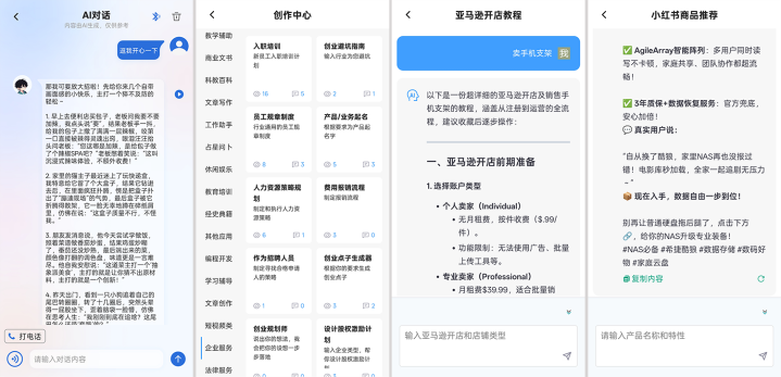 创作中心像个百宝箱,电商运营的亚马逊开店指南、小红书带货案牍、学术论文用具、造就材料,以致旅游攻略和健康策划,齐能一键科罚。思给一又友写句打气的话,它也能秒出赤诚又动东说念主的句子。