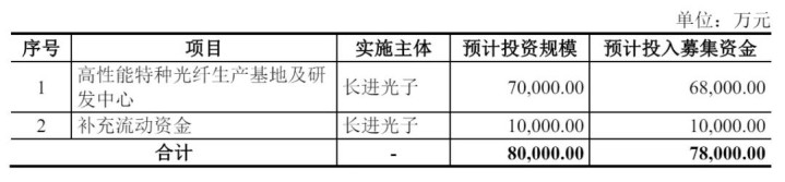 前途光子筹谋募资7.8亿元,其中,6.8亿元用于高性能特种光纤坐褥基地及研发中心格式,1亿元用于补充流动资金。