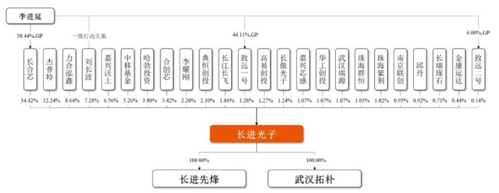 合创芯捏股为2.56%,李耀刚捏股为1.65%,典恒创投捏股为1.57%,长江长飞捏股为1.39%,致远一号捏股为0.96%,高易创投捏股为0.95%,长傲光子捏股为0.93%;