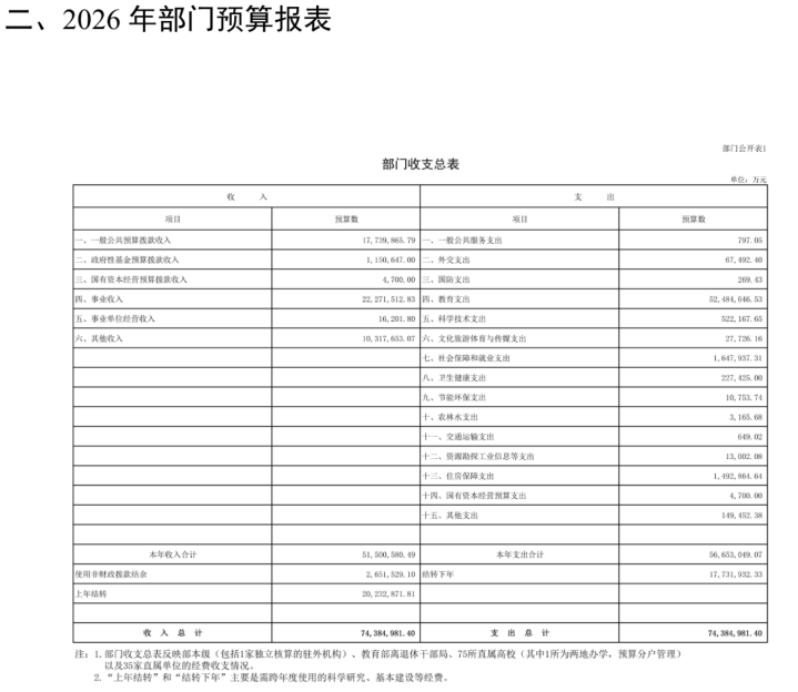 3月临了一周, 教会部和工信部差未几是紧接着公布了2026年部门预算,教会部收支总预算是7438亿元,工信部是1401亿元把两份文献放在一块,高档教会的钱袋子基本就裸知道来。