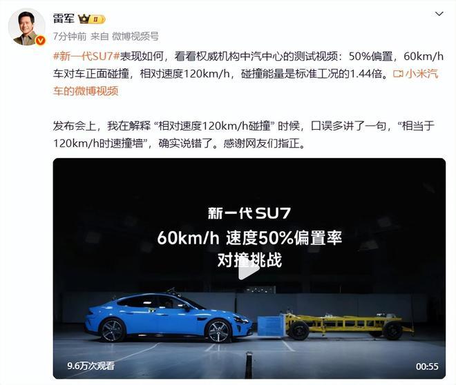 3月21日,雷军发文:发布会上,我在评释 “相对速率120km/h碰撞” 时刻,口误多讲了一句,“相称于120km/h时速撞墙”,如实说错了。感谢网友们指正。