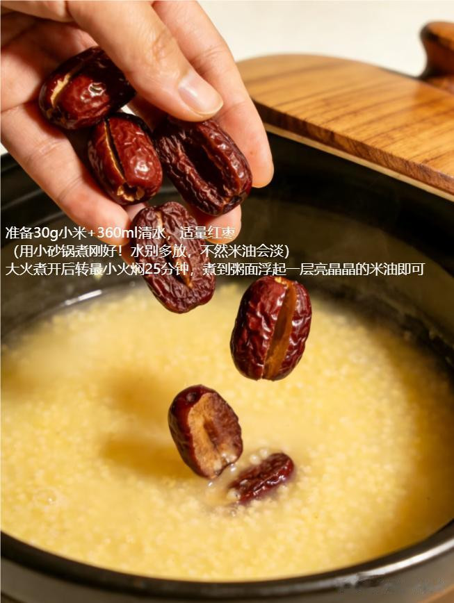 保举服法:黎明熬一碗浓稠的小米粥,不错加入几颗红枣(补气血)或山药(健脾),既温存又津润。